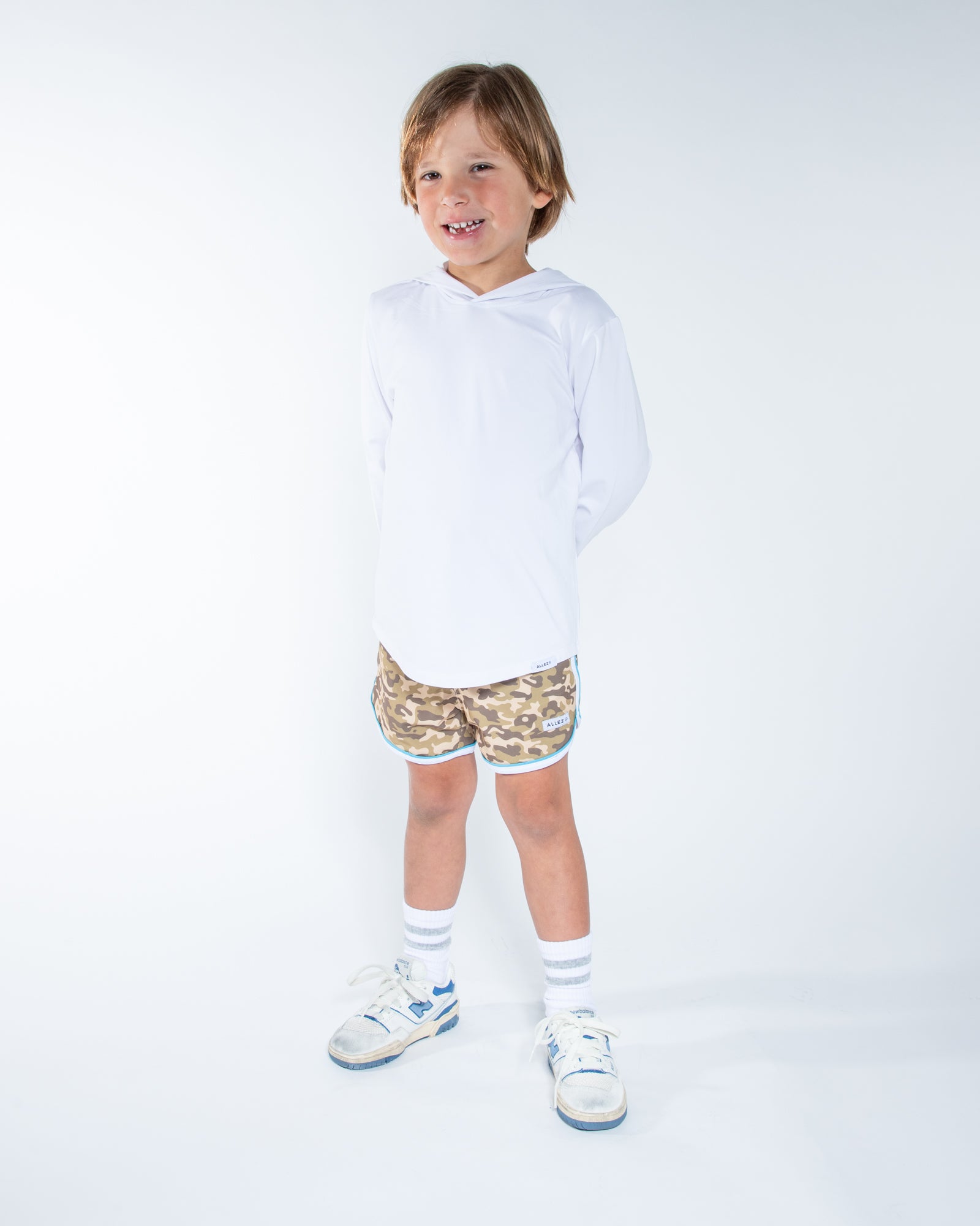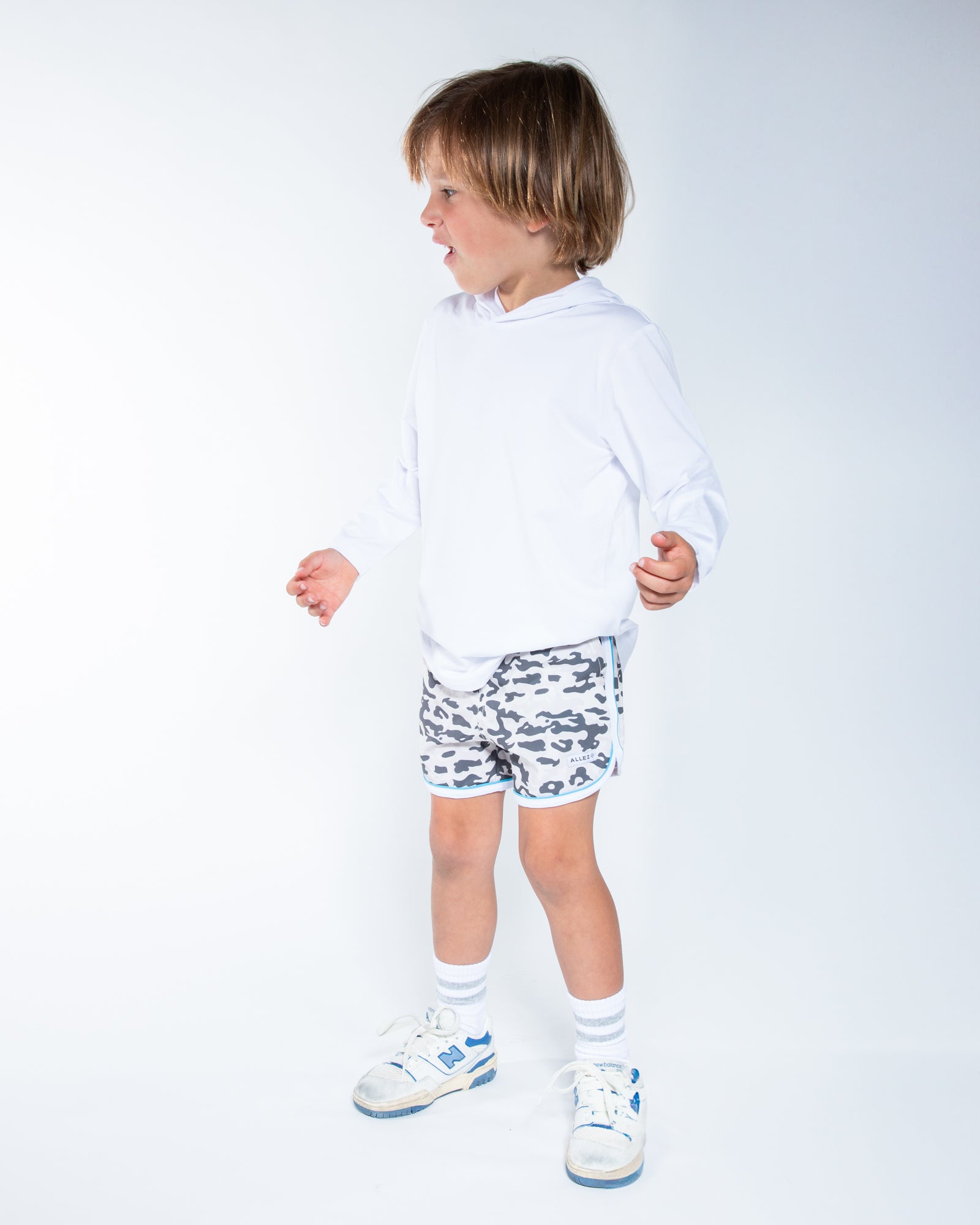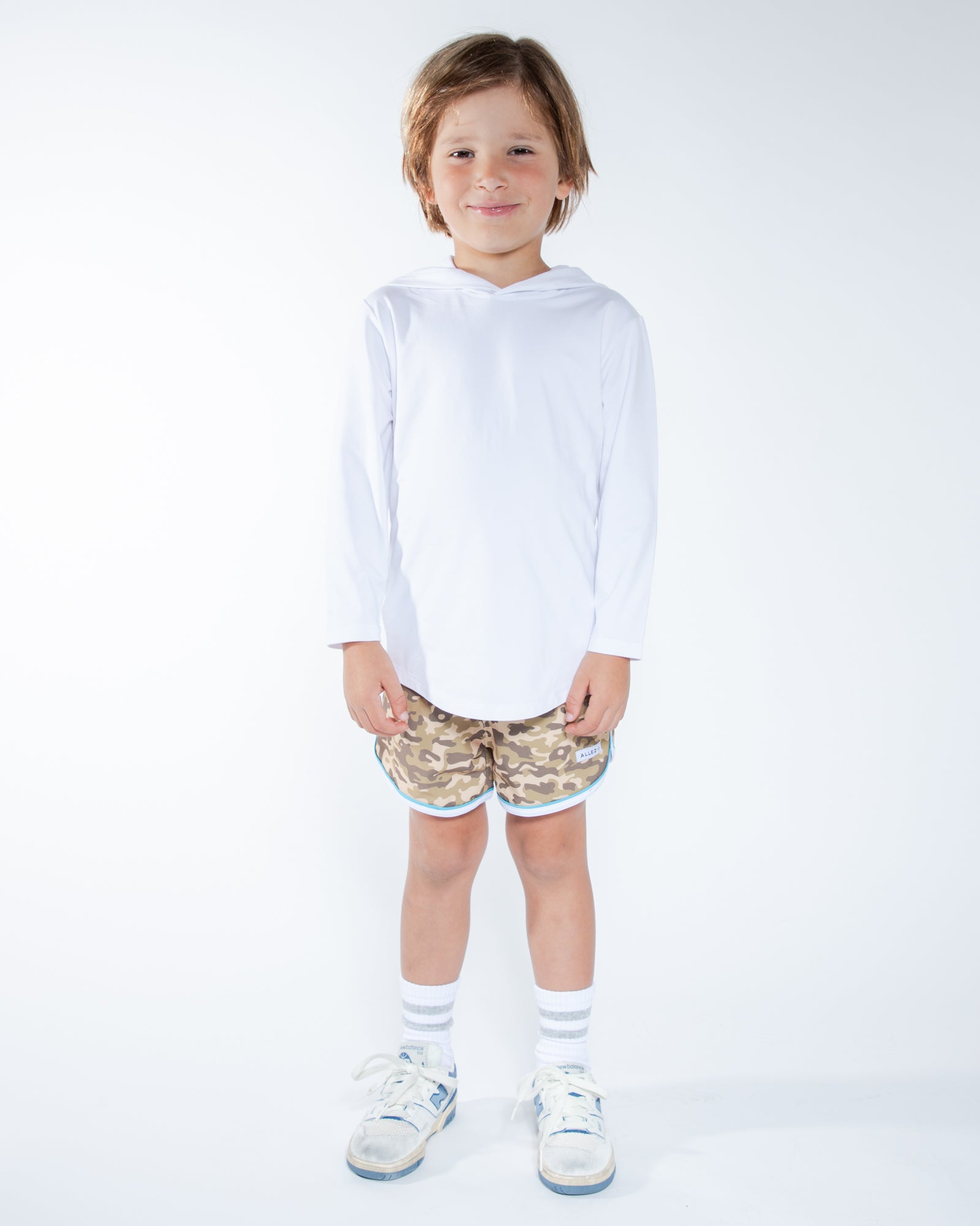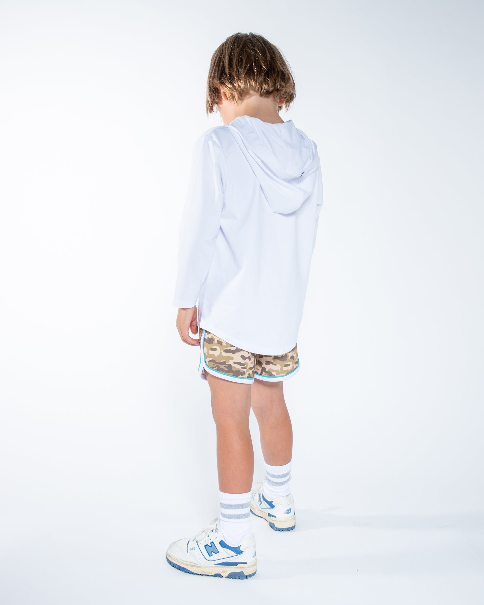Introducing The Runner, the perfect way to run and have fun! Our relaxed, above the knee shorts feature a dolphin hem, slanted pockets and are made from recycled fabric. These kids shorts are stylish and ready for any movement.