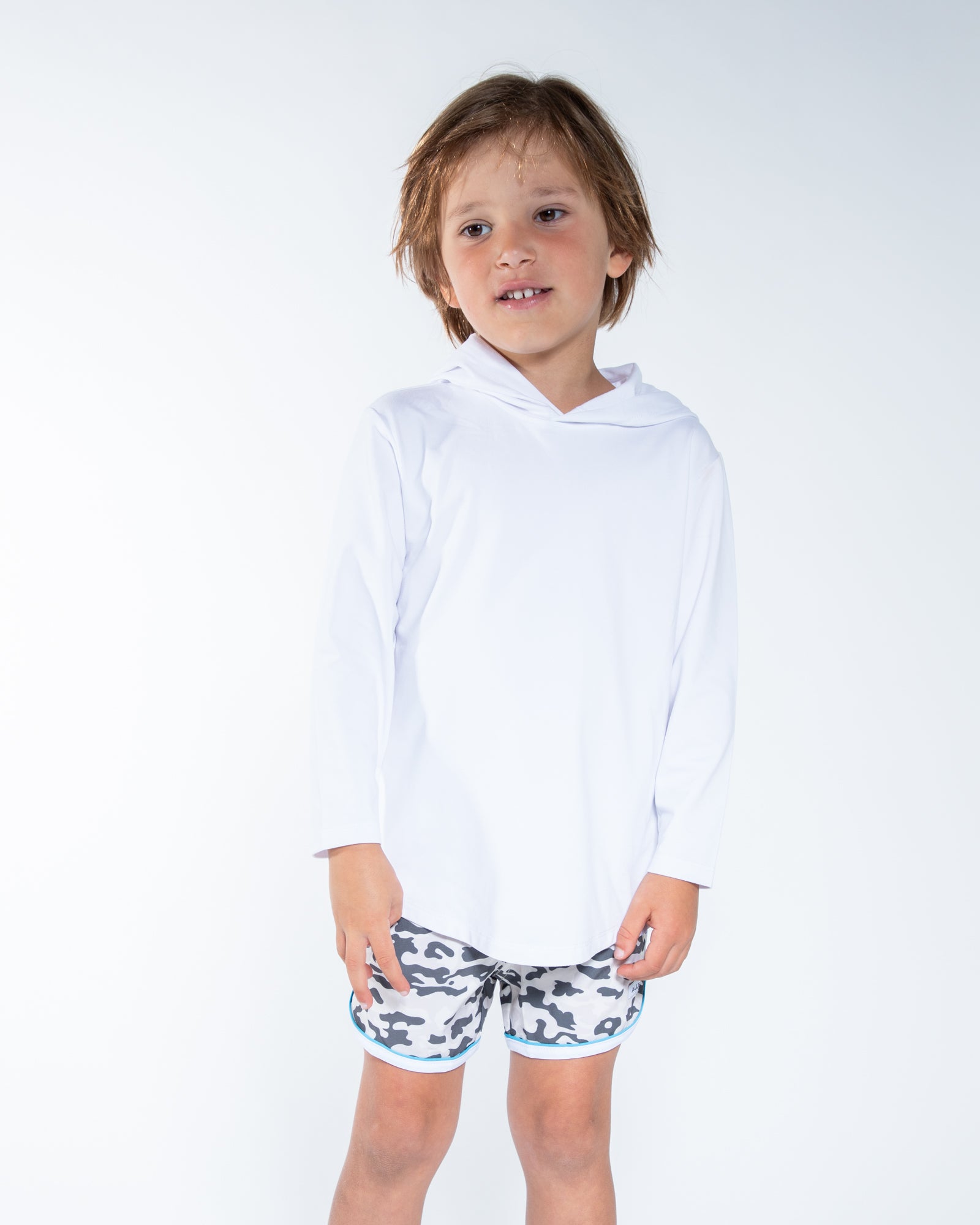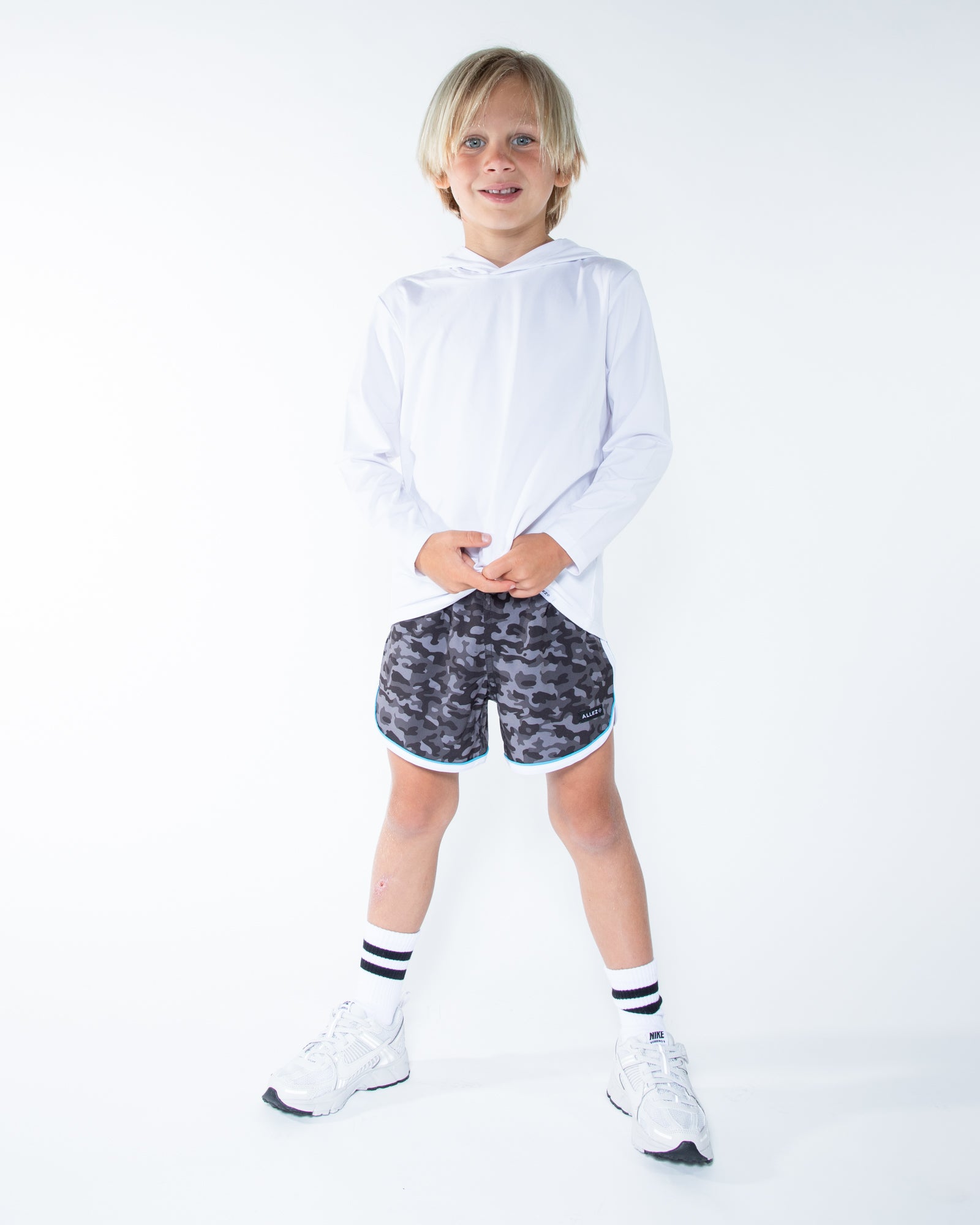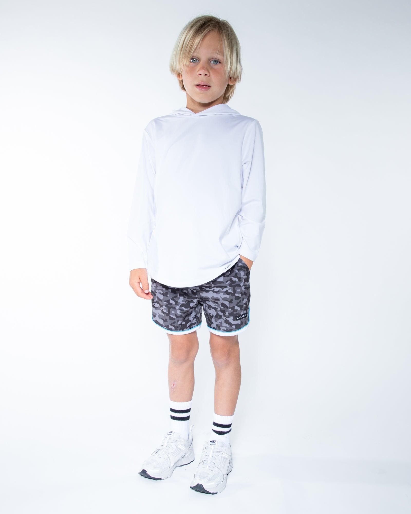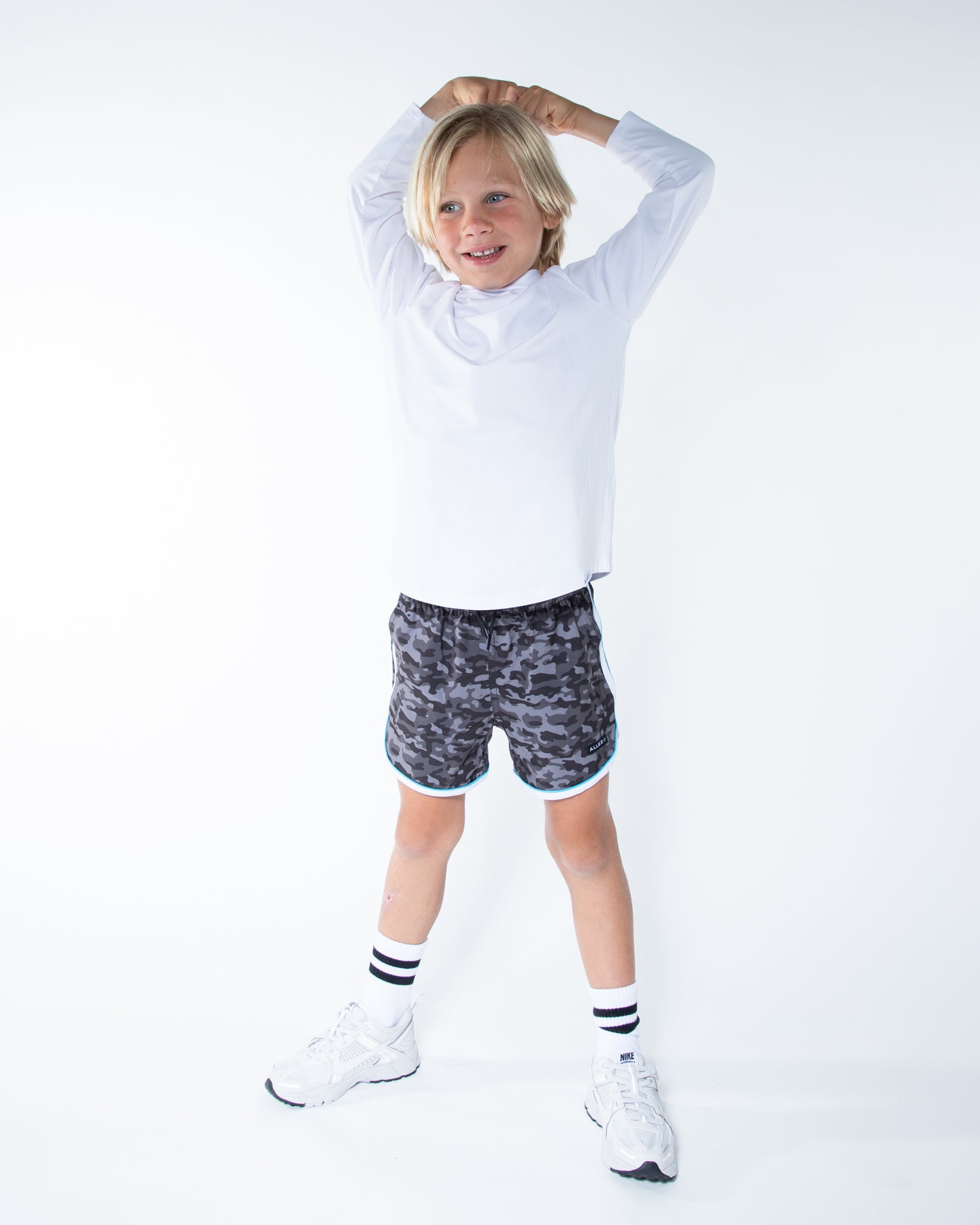 Introducing The Runner, the perfect way to run and have fun! Our relaxed, above the knee shorts feature a dolphin hem, slanted pockets and are made from recycled fabric. These kids shorts are stylish and ready for any movement.